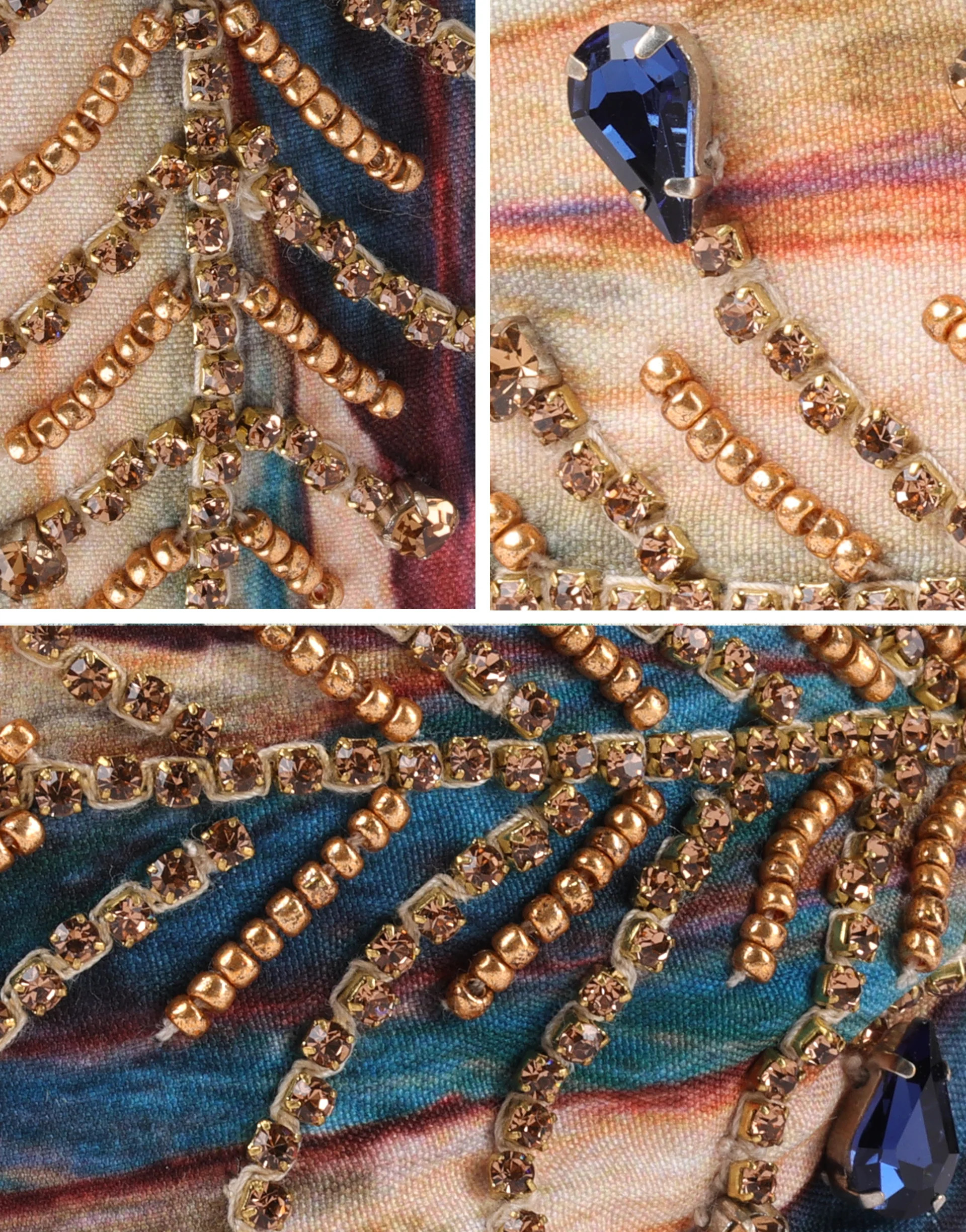 Cette pièce est entièrement réalisée à la maison avec un savoir faire exceptionnel de tissage de perles et de broderies en Inde à Delhi.