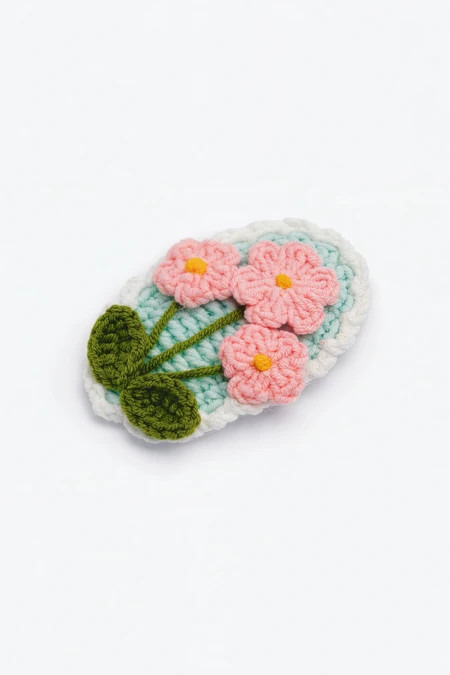Barrette à cheveux au crochet qui allie charme artisanal et fun, idéale pour apporter une touche douce et originale à vos coiffures.