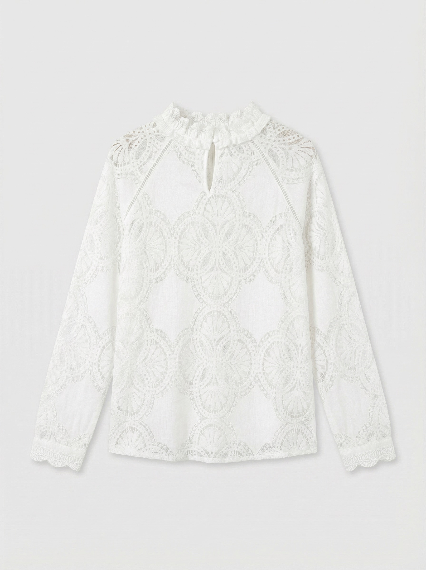 Manches longues avec un joli feston en dentelle.