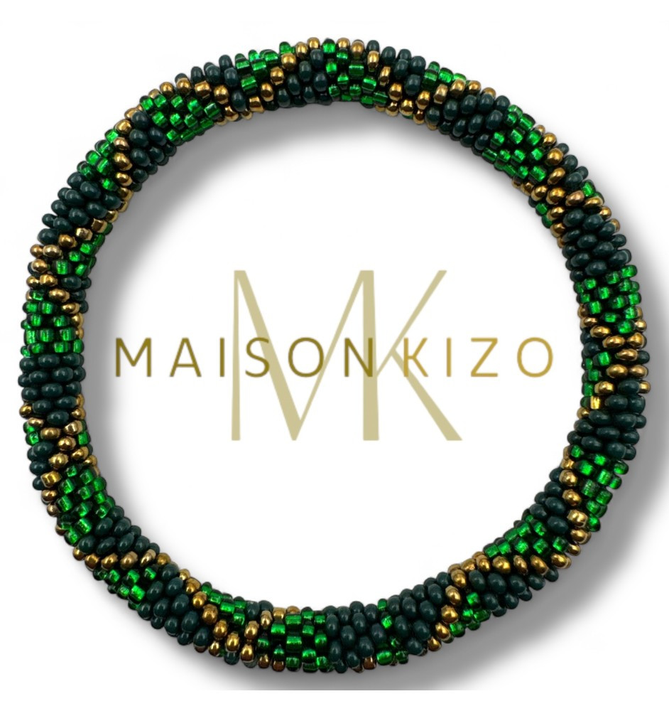 Bracelet en perles de verre, modèle NÉPALAIS VERT SAPIN DORÉ B05.