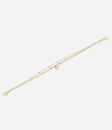 Le bracelet RADIEUX DORÉ est composé de trois chaines avec un pendentif en zirconium blanc qui compose une délicate manchette à votre poignet.