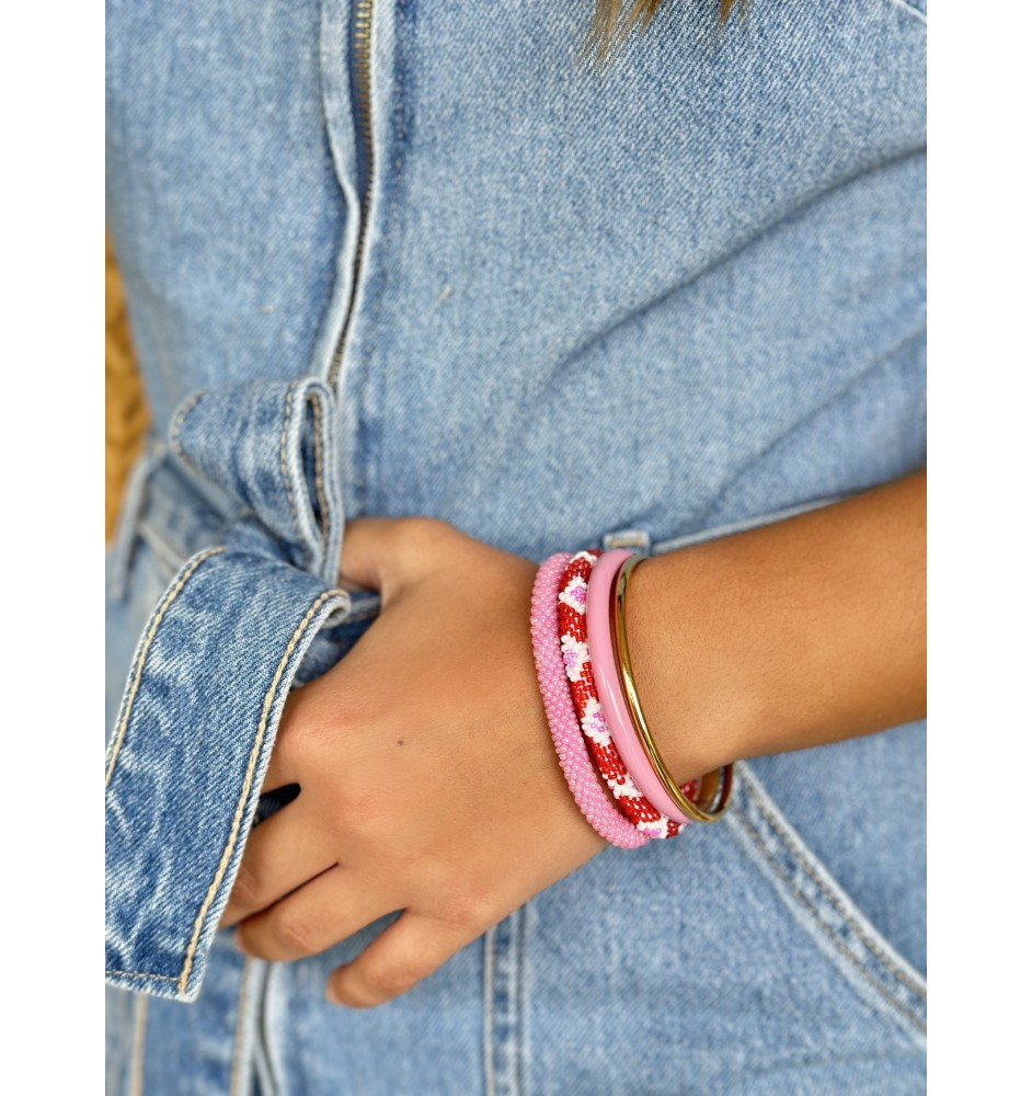 Bracelet en perles de verre, modèle NÉPALAIS ROSE R05 de la collection printemps-été 2025.