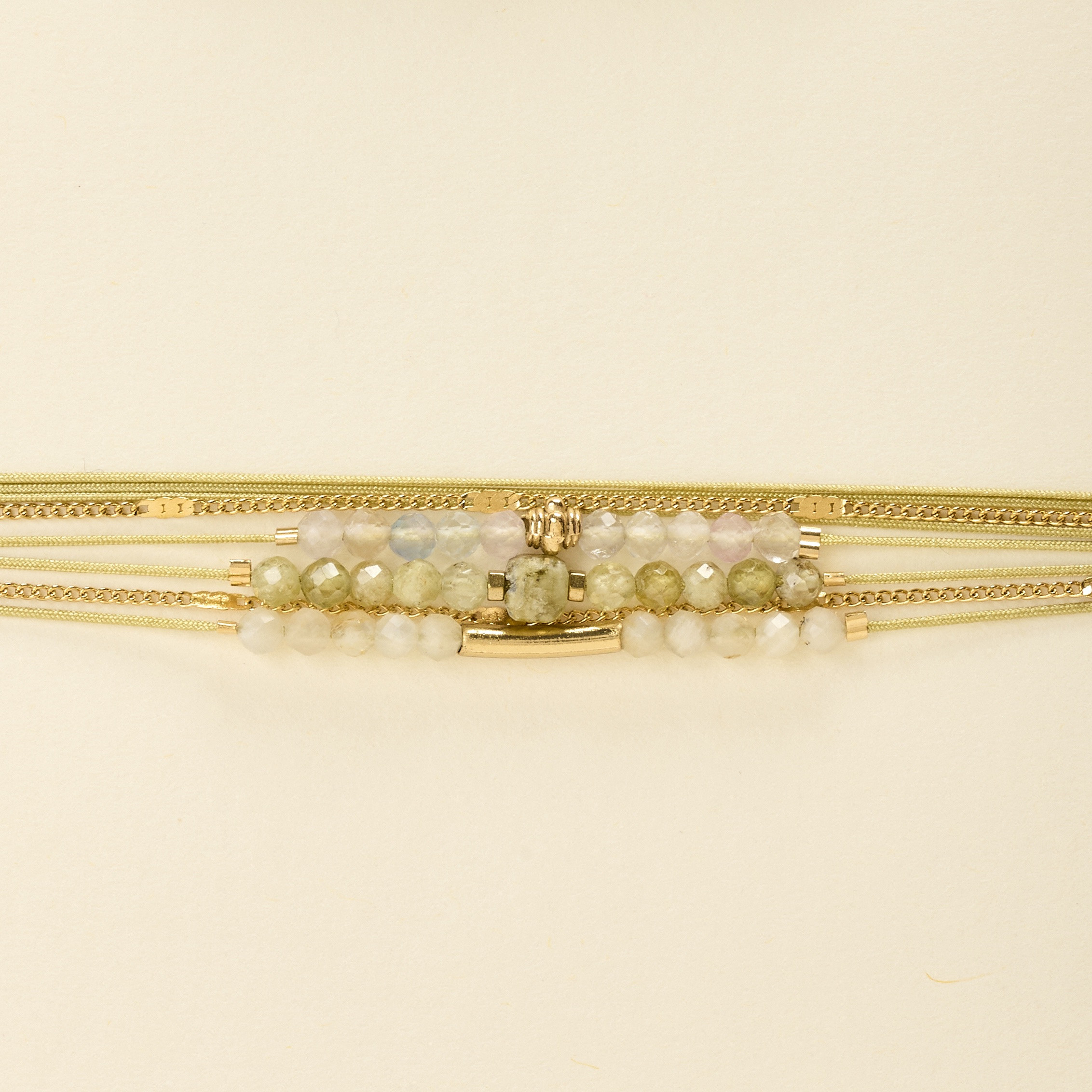 Le bracelet CICI modèle multi-tours, style signature de la créatrice Nimoise, est composé de plusieurs liens et chaines en acier inoxydable avec des perles naturelles délicatement choisies pour composer une manchette féminine et délicate qui s'enroule deux fois autour du poignets.