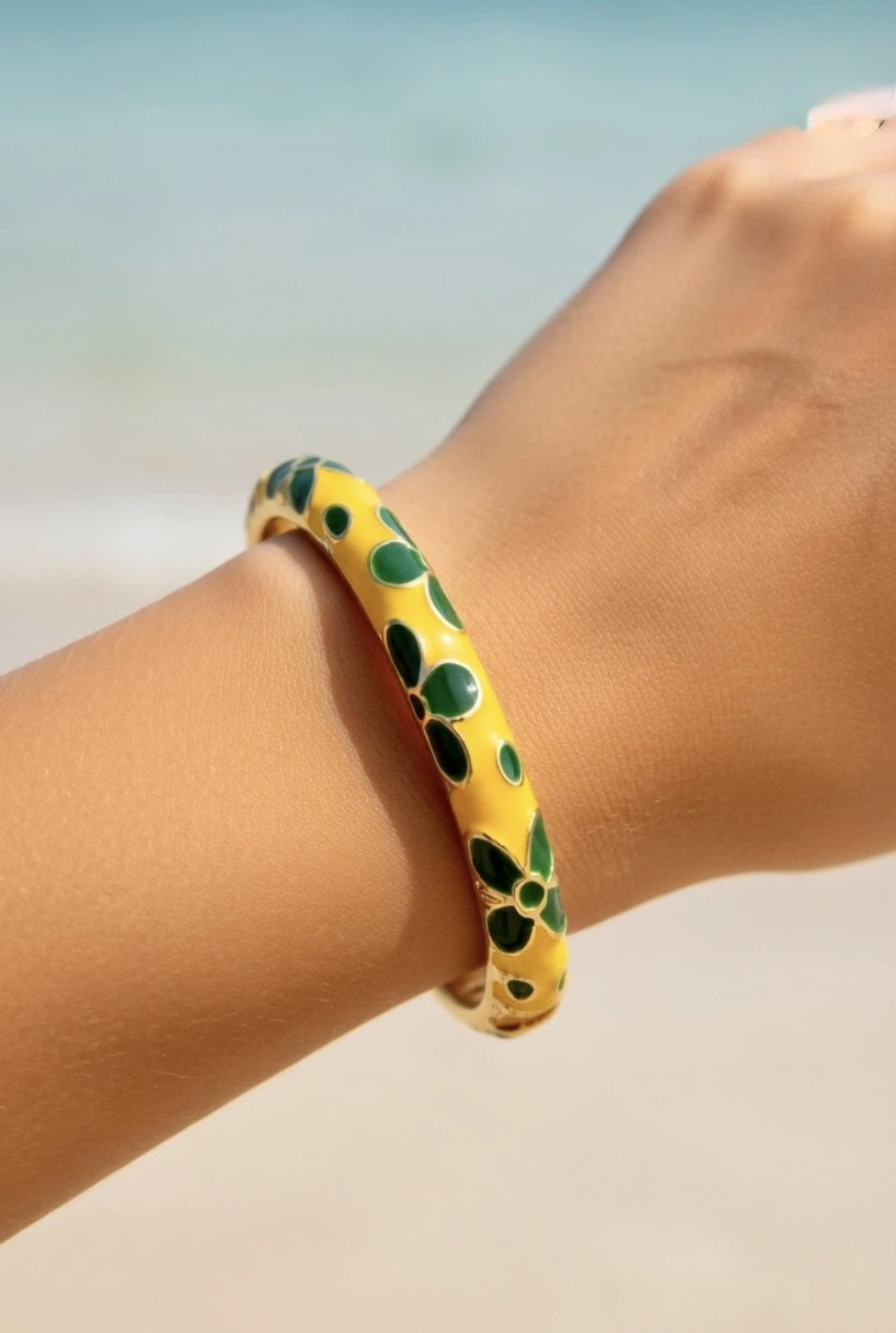 Jonc émaillé FLOWERS LOVER avec un motif de fleurs tout en délicatesse pour compléter une manchette ou à porter seul.