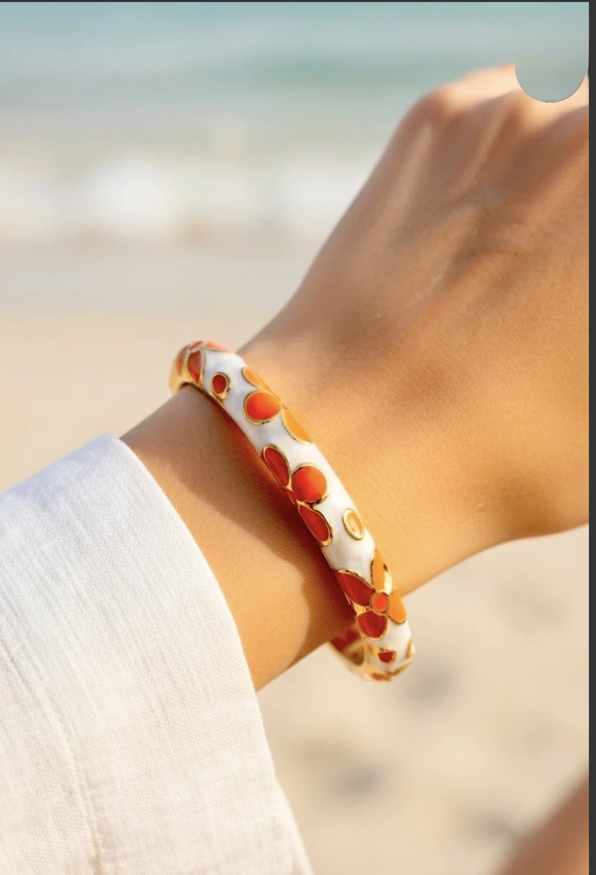 Jonc émaillé FLOWERS LOVER avec un motif de fleurs tout en délicatesse pour compléter une manchette ou à porter seul.