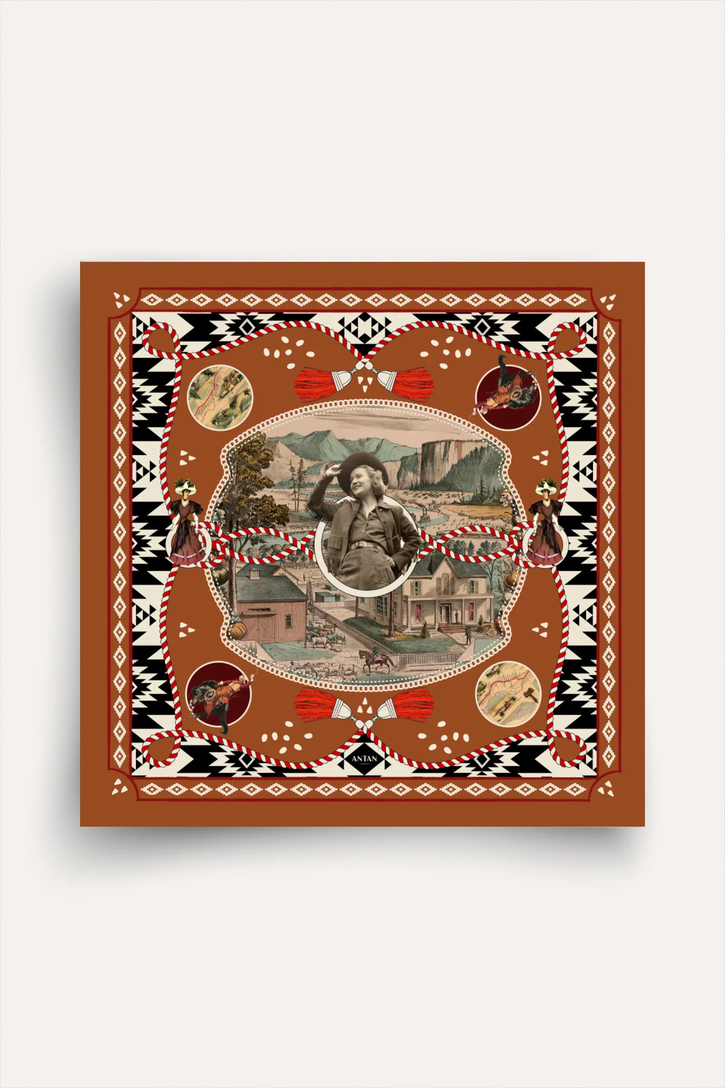 Foulard carré soie ANTAN DUSTY WEST BROWN 70