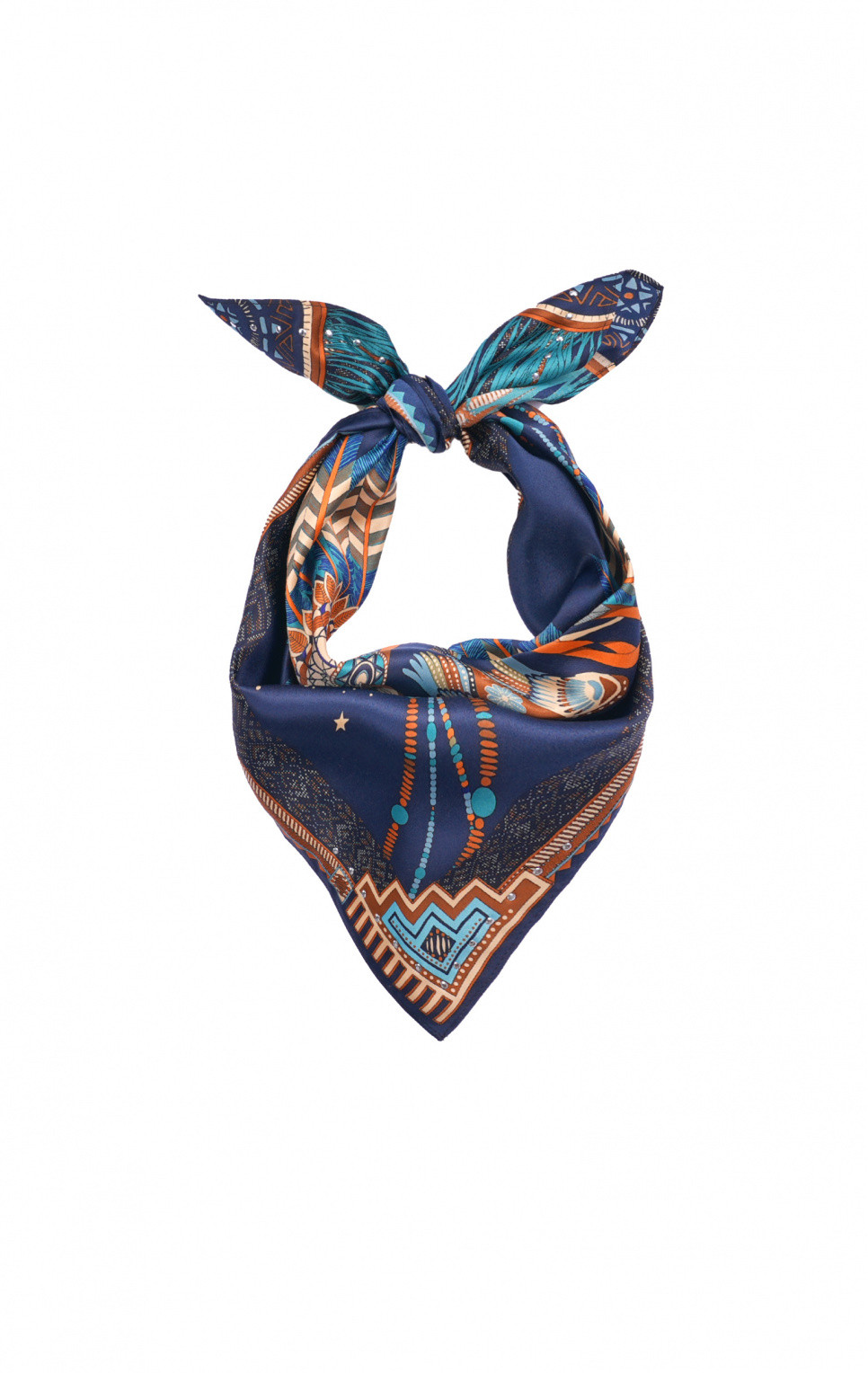 Le foulard NOUVEAU WESTERN MINI de la marque Wild, se pare en son centre d'une superbe coiffe d'indien rehaussée de symboles tribaux.