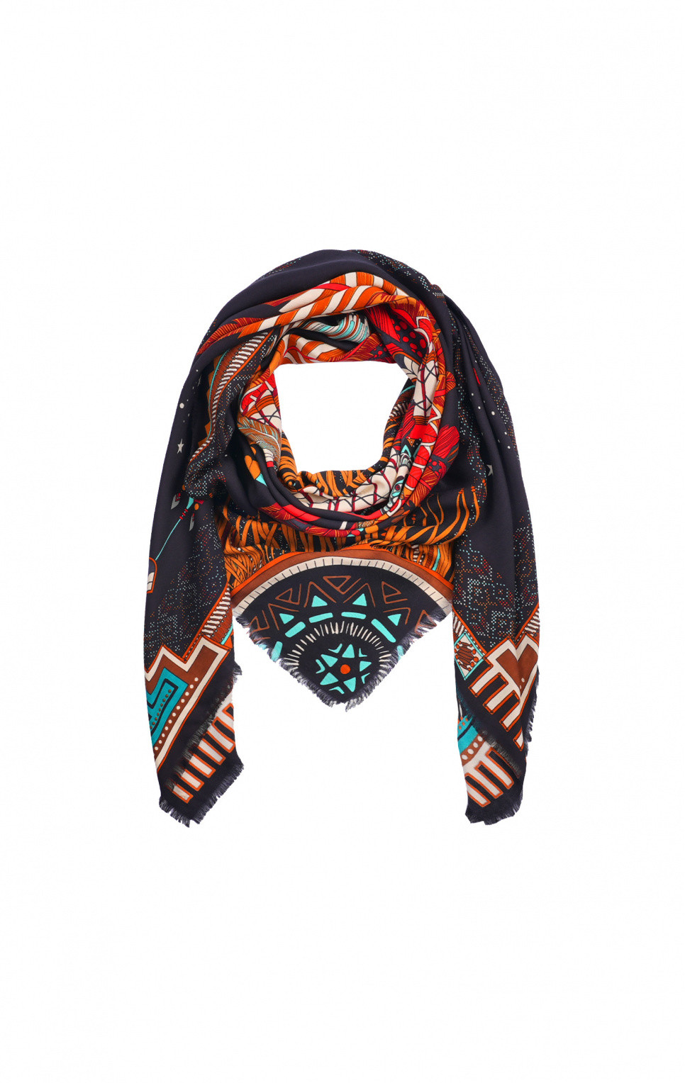 Le foulard NOUVEAU WESTERN BIG de la marque Wild, se pare en son centre d'une superbe coiffe d'indien rehaussée de symboles tribaux.
