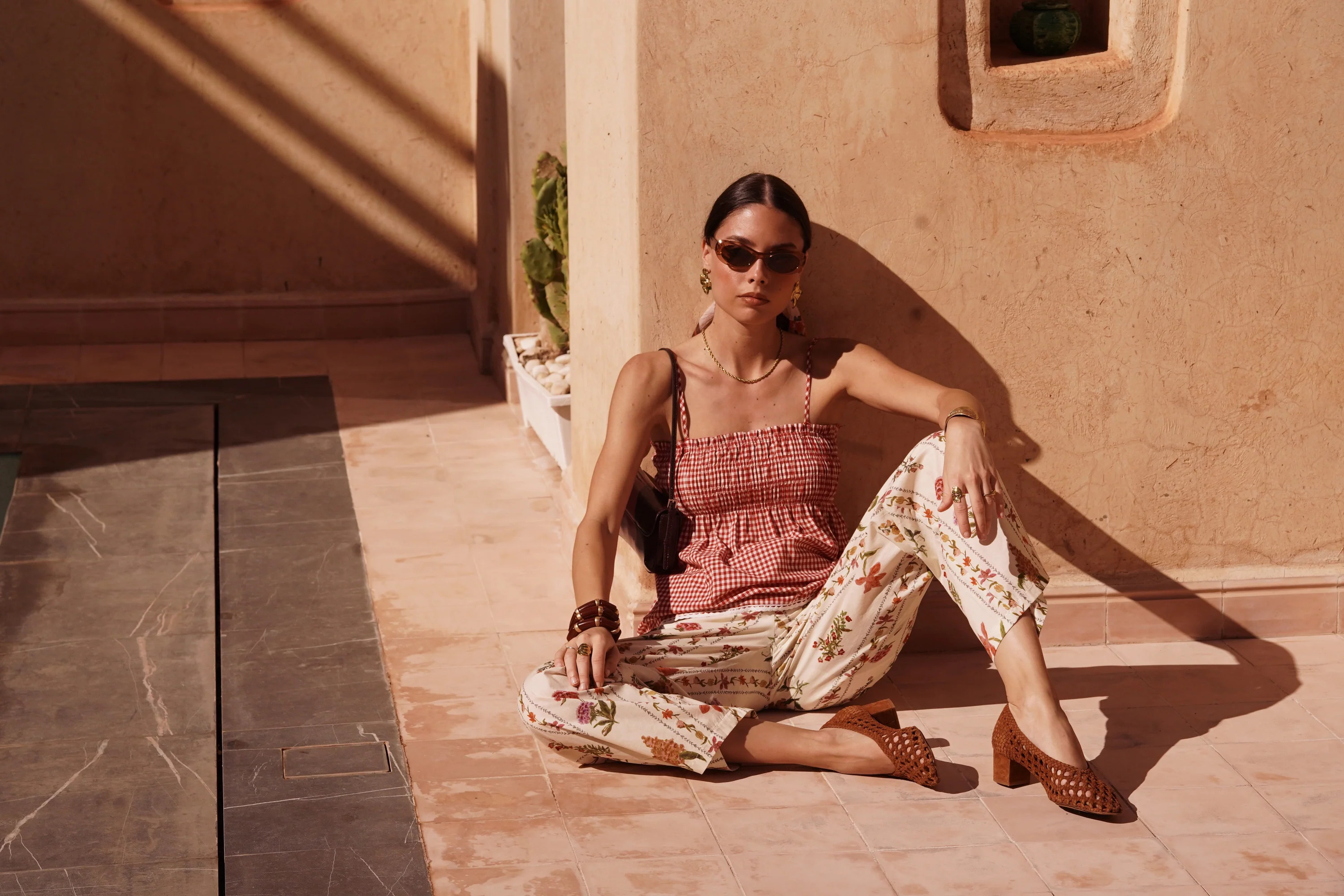 Pantalon SMOULY léger et confortable avec son tissu souple à l'imprimé floral et à la coupe droite ajustée à la taille par un élastique.