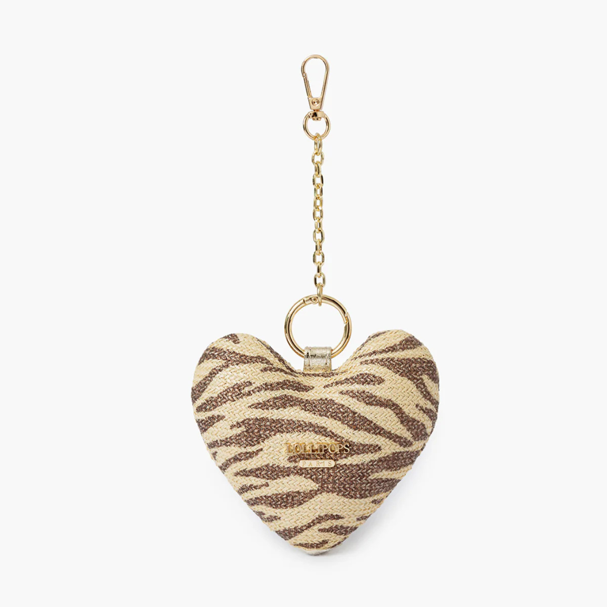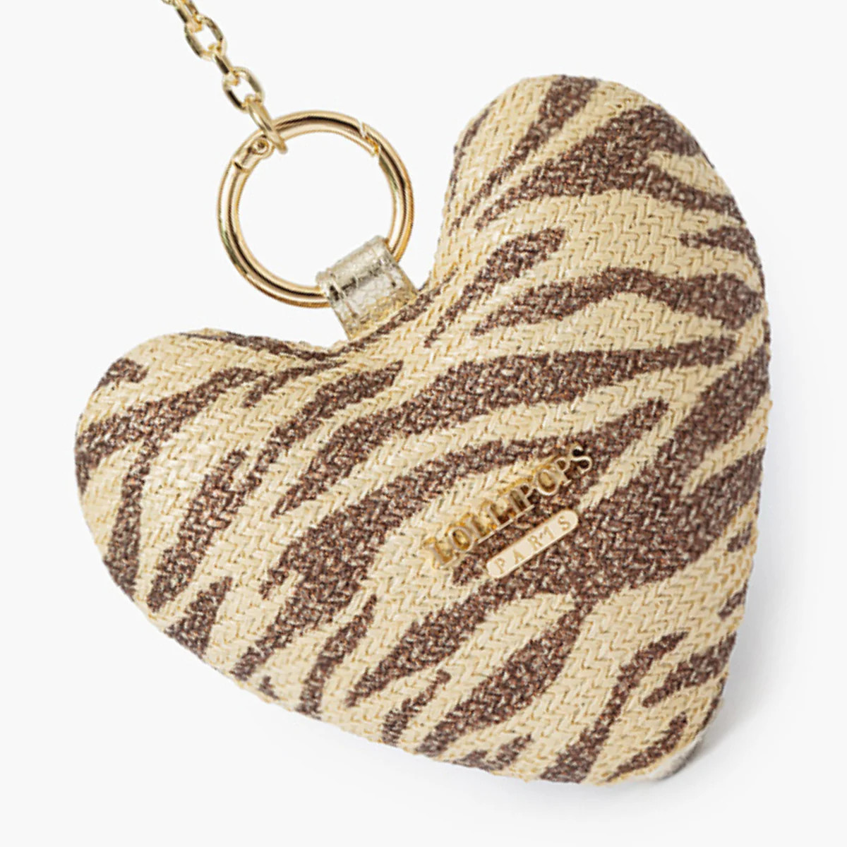 Porte clefs Lollipops modèle SEART MARRON en forme de coeur en tissu pour accessoiriser vos sacs ou vos clefs.