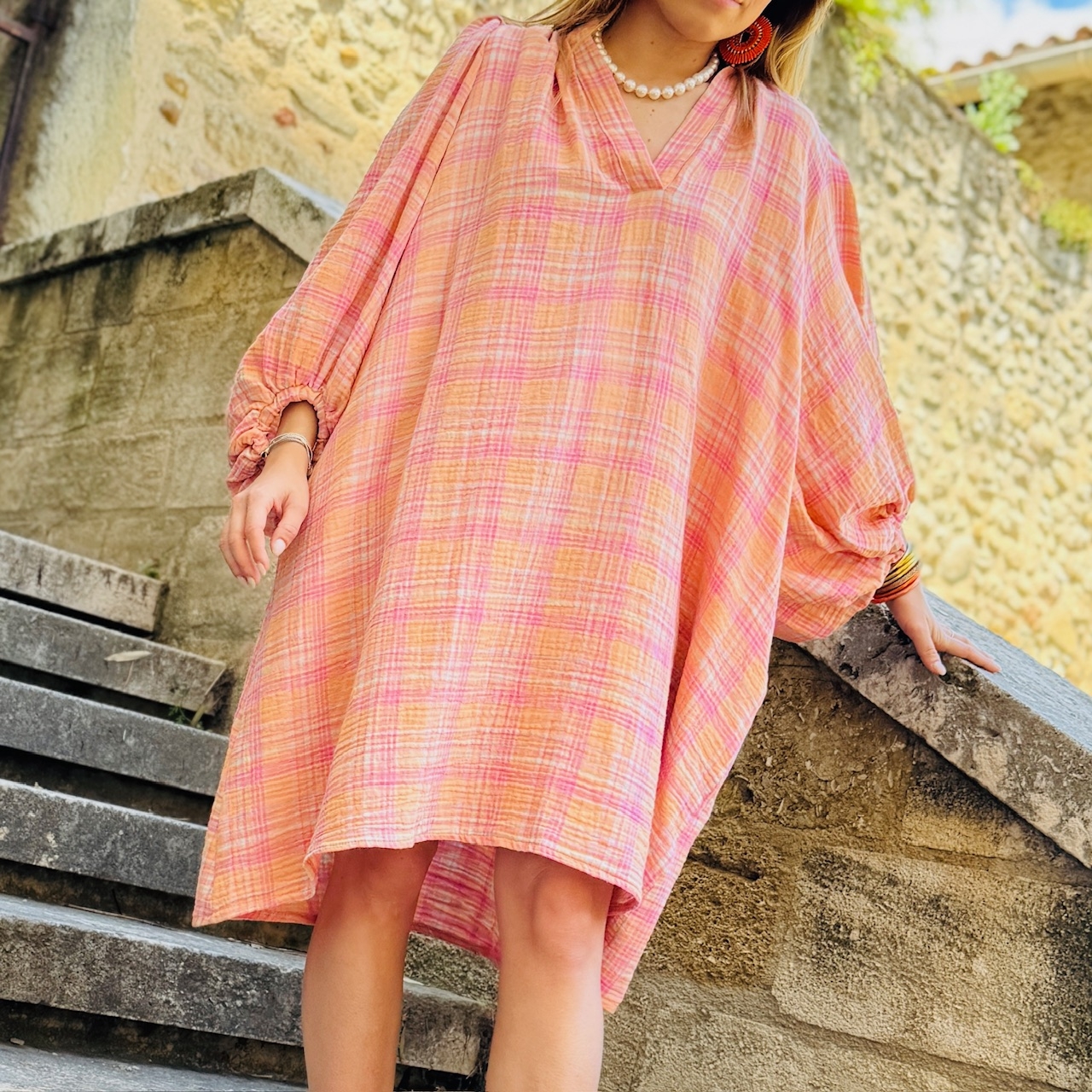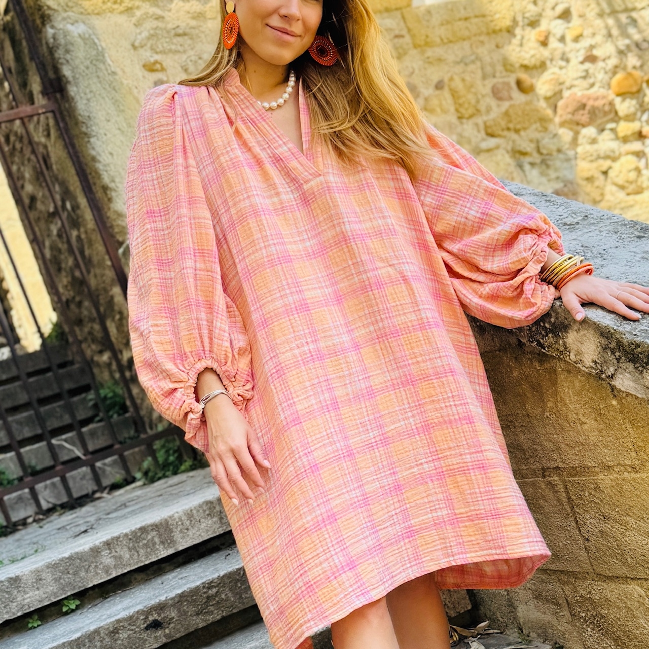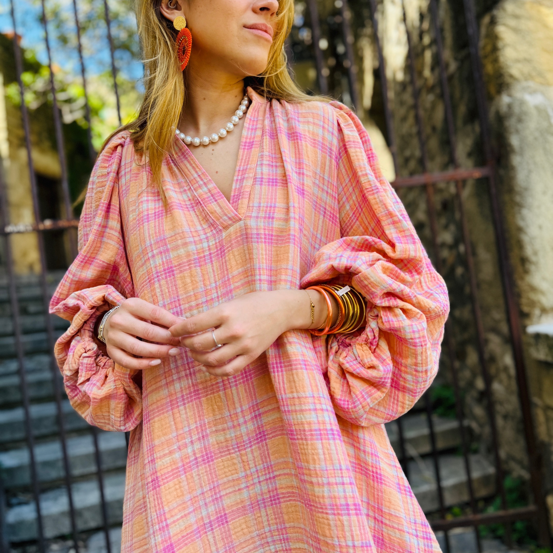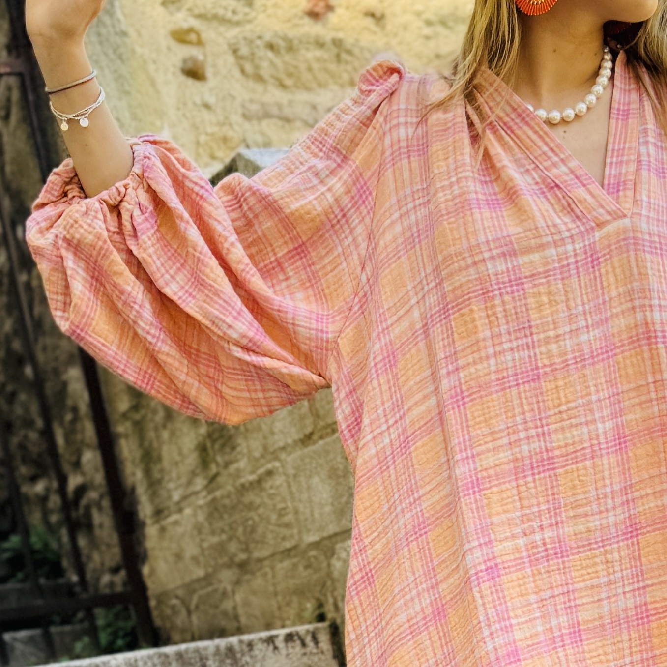 Robe mi longue avec des manches longues et bouffantes et un élastique, modèle MELANIA.