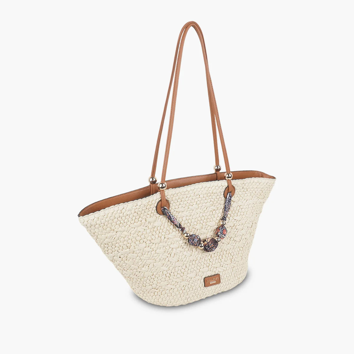 La panier SHIRLEY BEIGE est réalisé en paille papier écru avec un joli décor amovible en perles en tissu imprimé.