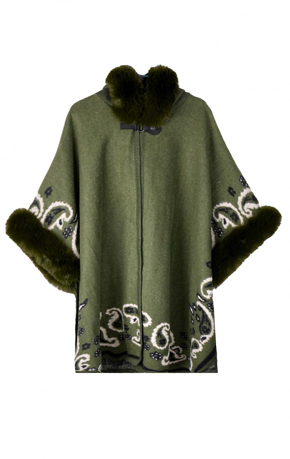 Confectionné dans une maille laineuse et douillettes, le poncho JUAN VERT de chez Wild, se pare d'un jacquard bandana aux reflets verts et se structure par une forme asymétrique et des manches tombant au milieu du coude pour pour assurer une belle aisance de mouvements.